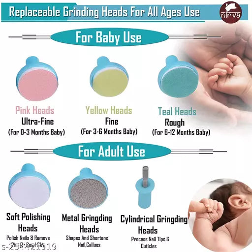 Electric Baby Nail Trimmer File, Safe Baby Nail File Set with 6 Grinders Manicure Kit, Efficient, -Quiet, ABS Electric Nail File with LED Light, for Newborn, Toddler, Infant