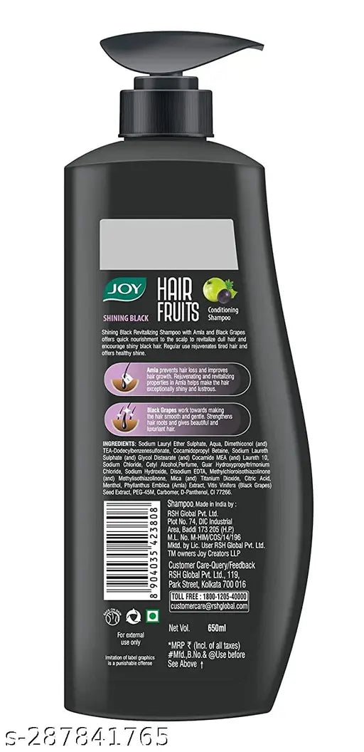 Joy Hair Fruits Shining Black Conditioning Shampoo Enriched with Amla & Black Grapes (650 ml)