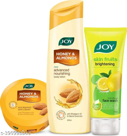 Joy Honey & Almonds Advanced Nourishing Body Lotion 300ml + Honey & Almonds Nourishing Skin Cream 200ml+ Skin Fruits Active Brighteing Lemon Face Wash 100ml (3 Items in the set)