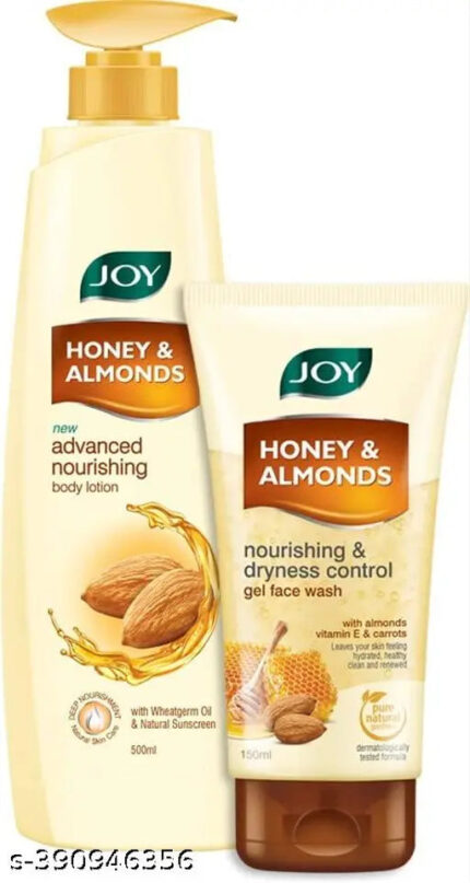 Joy Honey & Almonds Advanced Nourihing Body Lotion 500ml | Honey & Almonds Dryness Control Gel Face Wash 150ml ( Combo Pack ) (2 Items in the set)